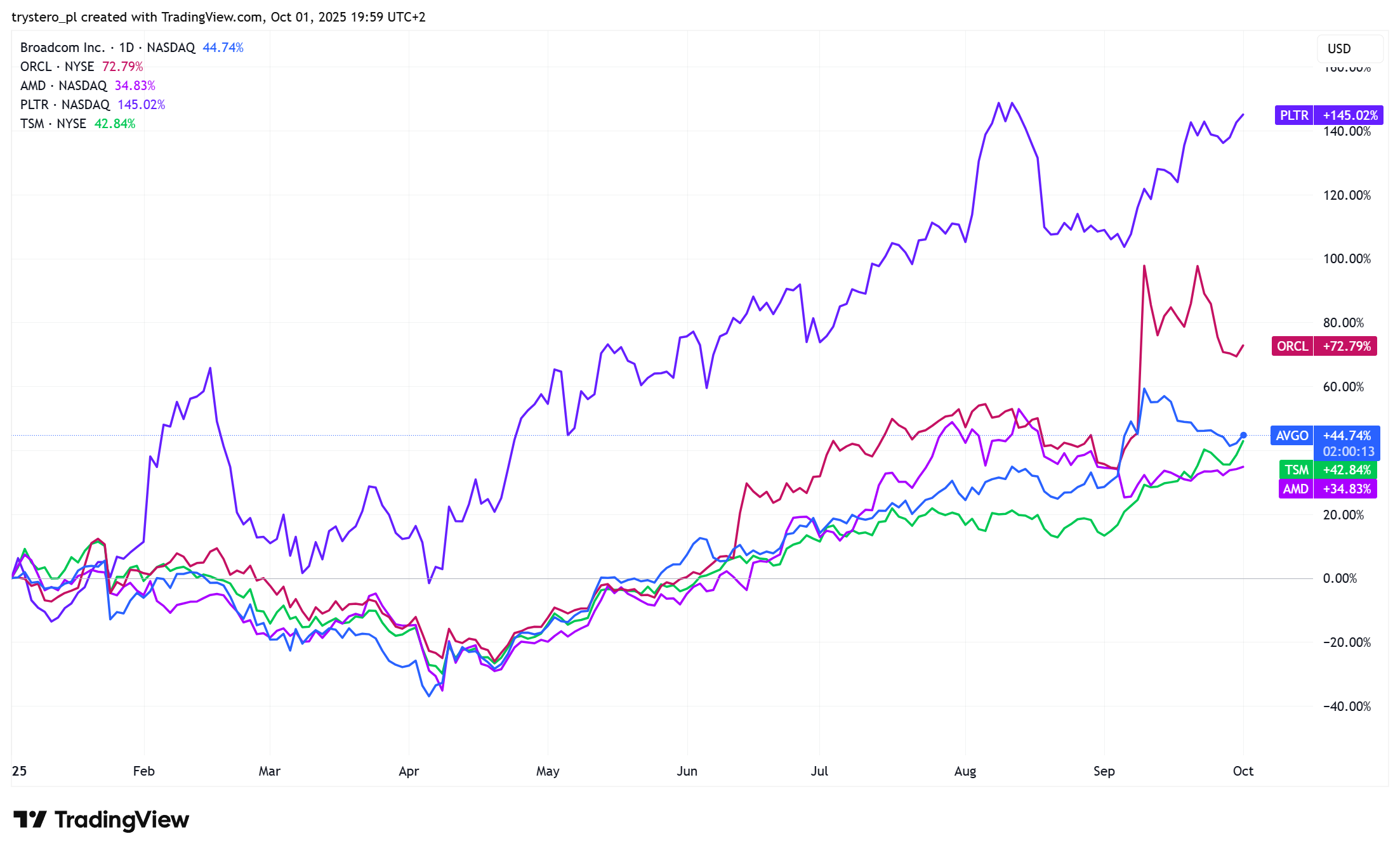 Trwają więc prace nad modyfikacją lub rozszerzeniem składu „wspaniałej siódemki”. Wśród firm aspirujących do grona topowych rynkowych spółek najczęściej wymienia się Broadcom, Oracle, Taiwan Semiconductor Manufacturing Company (TSMC), Palantir i Advanced Micro Devices.