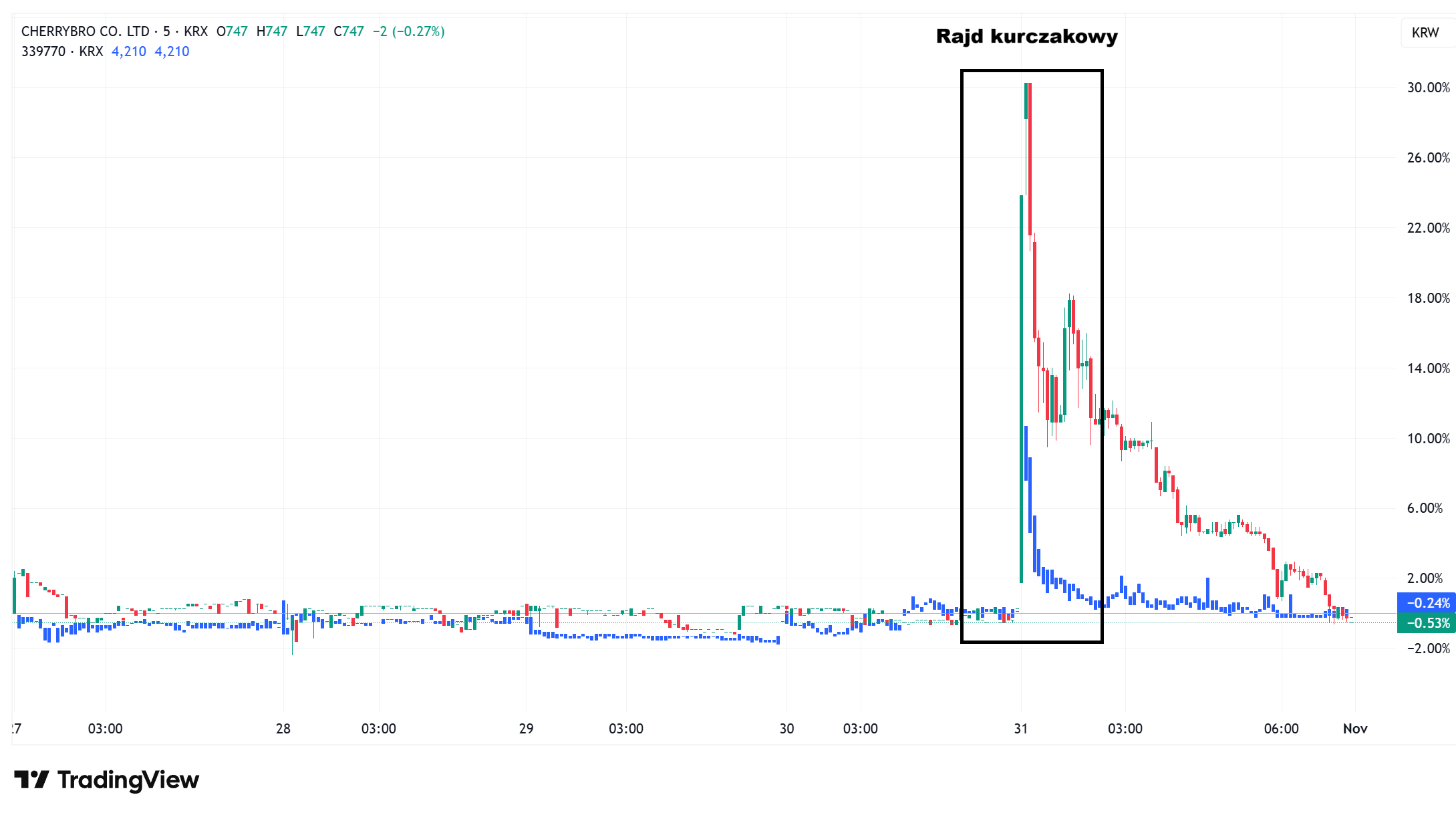 Wykres dnia przedstawia najnowszy rajd tematyczny na seulskiej giełdzie – „kurczakowy piątek”.
