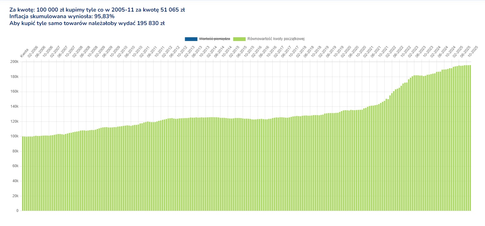 By zrozumieć jak niszczycielski dla kapitału inwestorów giełdowych jest podatek, który nie pozwala zwaloryzować kosztów nabycia papierów wartościowych o inflację zauważmy, że w ostatnich 20 latach skumulowana inflacja wyniosła 95,83 proc. Inaczej mówiąc, ktoś kto w listopadzie 2005 r. zainwestował na parkiecie 100 tys. zł, musiałby do dzisiaj zwiększyć wartość kapitału do 195 830 zł, żeby tylko utrzymać wartość nabywczą pieniędzy. A fiskus od tych 95 830 zł nominalnego, papierowego zysku pobrałby sobie sobie 19 proc. podatku, czyli 18 208 zł, powodując stratę w takiej wysokości.