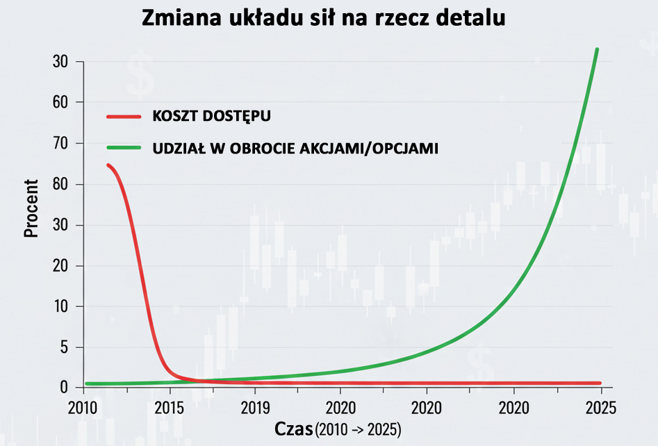 W poprzednich częściach tego cyklu diagnozowałem jak detal przestał się bać i uzbroił się w potężne narzędzia (opcje 0DTE, ETF-y). Jednak, aby zrozumieć pełny obraz tej transformacji, trzeba jeszcze zejść poziom niżej.