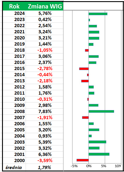 U nas na GPW wygląda to nieco lepiej, liczyłem dla WIG od 2000 roku:
