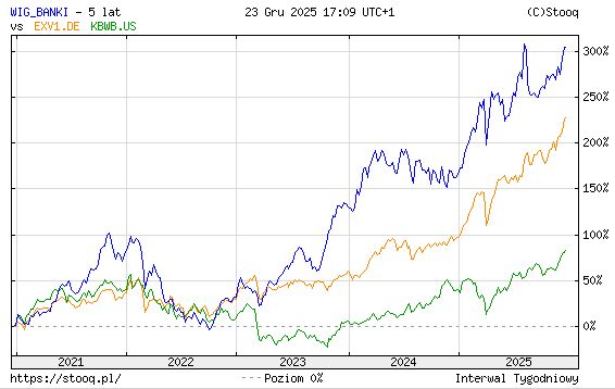 Rok 2025 na Giełdzie Papierów Wartościowych w Warszawie będzie kolejnym, w którym sektor bankowy zachowa się lepiej od rynku. Uwzględniając korelację z otoczeniem na horyzoncie czają się ryzyka, jak i szanse na kolejne dobre 12 miesięcy.
