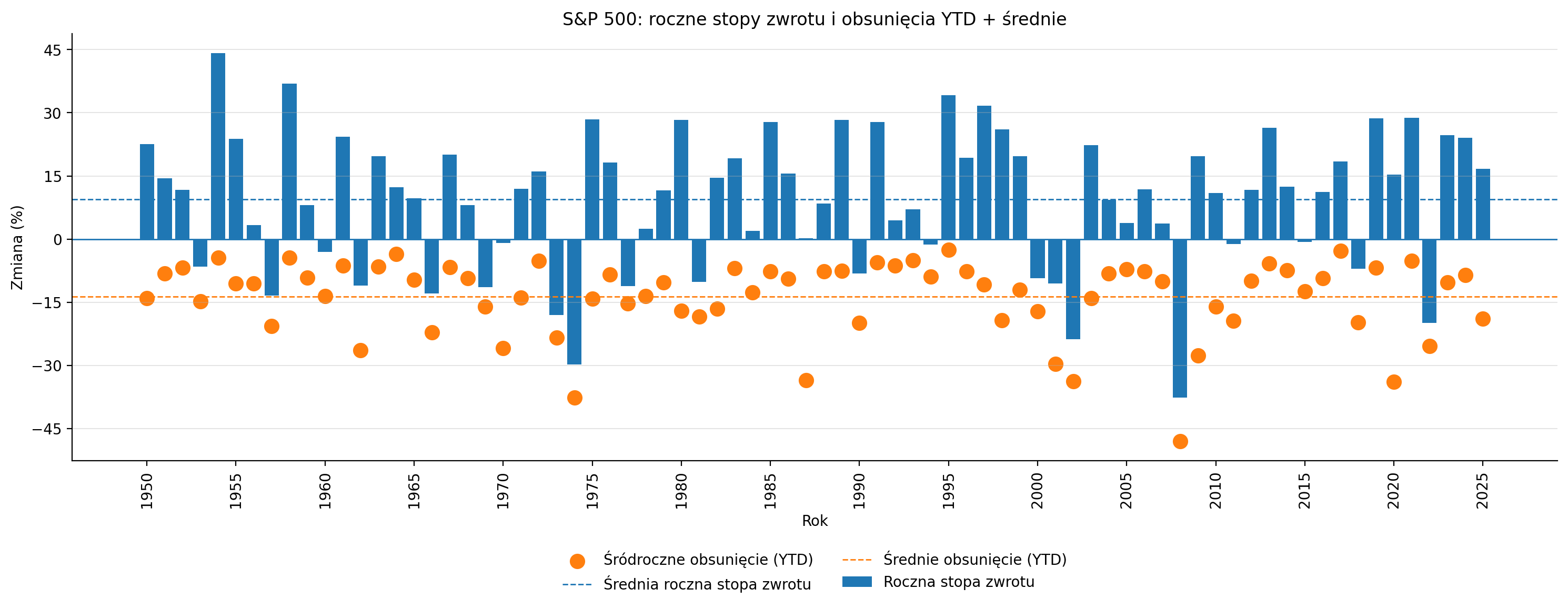 S&P 500 zyskał 16,65% (powyżej średniej 9,4% w okresie po 1950 roku), a maksymalne obsunięcie w ujęciu YTD (od początku roku) wyniosło 18,9% (powyżej średniej 13,7%). Można powiedzieć, że „za odrobinę więcej zmienności inwestorzy otrzymali odrobinę wyższe stopy zwrotu”.