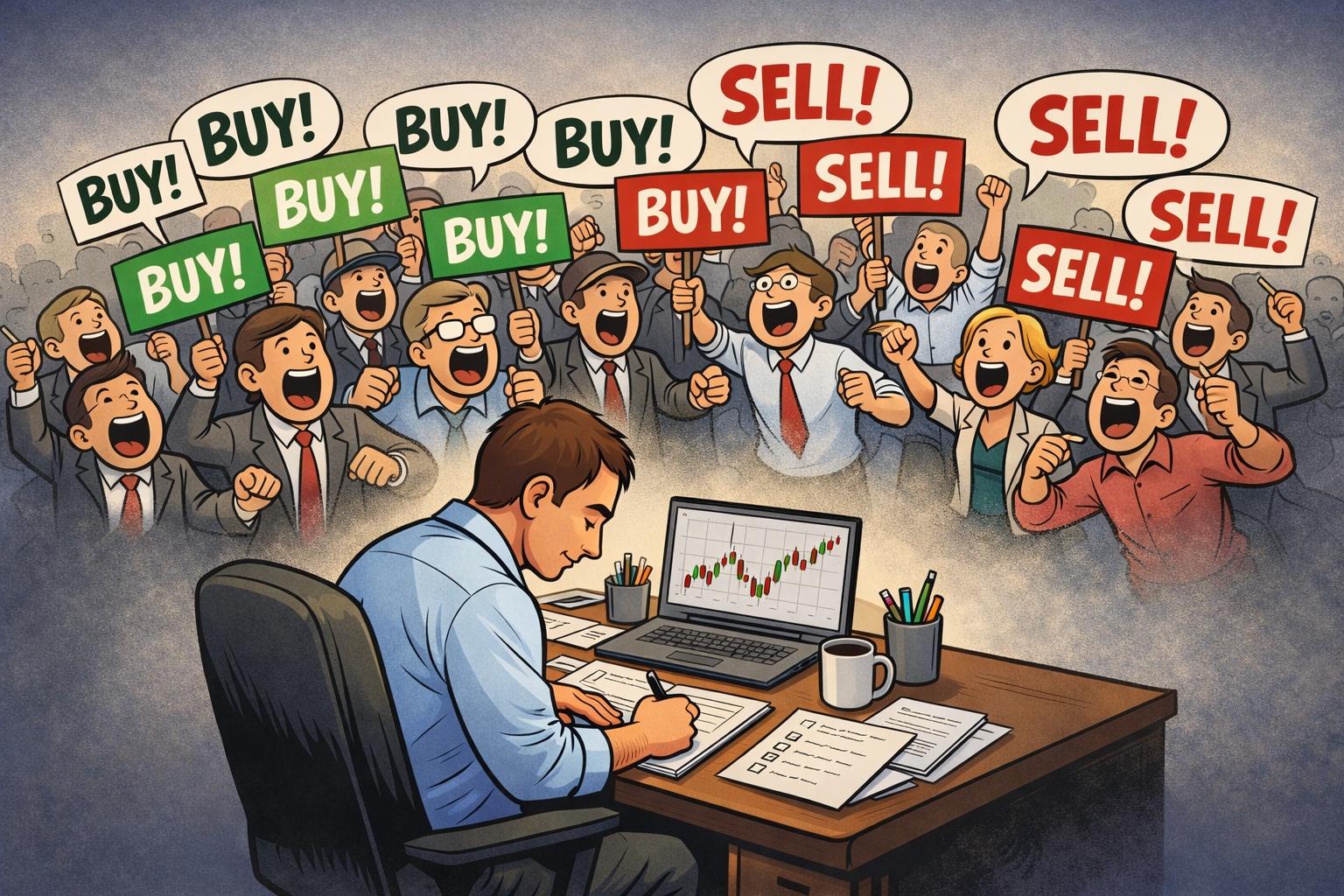 Ze względu na rolę porównań w aktywowaniu FOMO ochronę przed tym zjawiskiem może zapewnić bycie zajętym. W przypadku „zwykłych” inwestorów może to oznaczać skupianie się na pracy, rodzinie i hobby, a nie kompulsywne sprawdzanie notowań giełdowych. W przypadku „zawodowych” inwestorów może to oznaczać spędzanie czasu na czytaniu raportów lub analizowaniu wykresów, a nie skrolowaniu X. FOMO wymaga ekspozycji na bodźce – jej ograniczenie redukuje ryzyko FOMO.