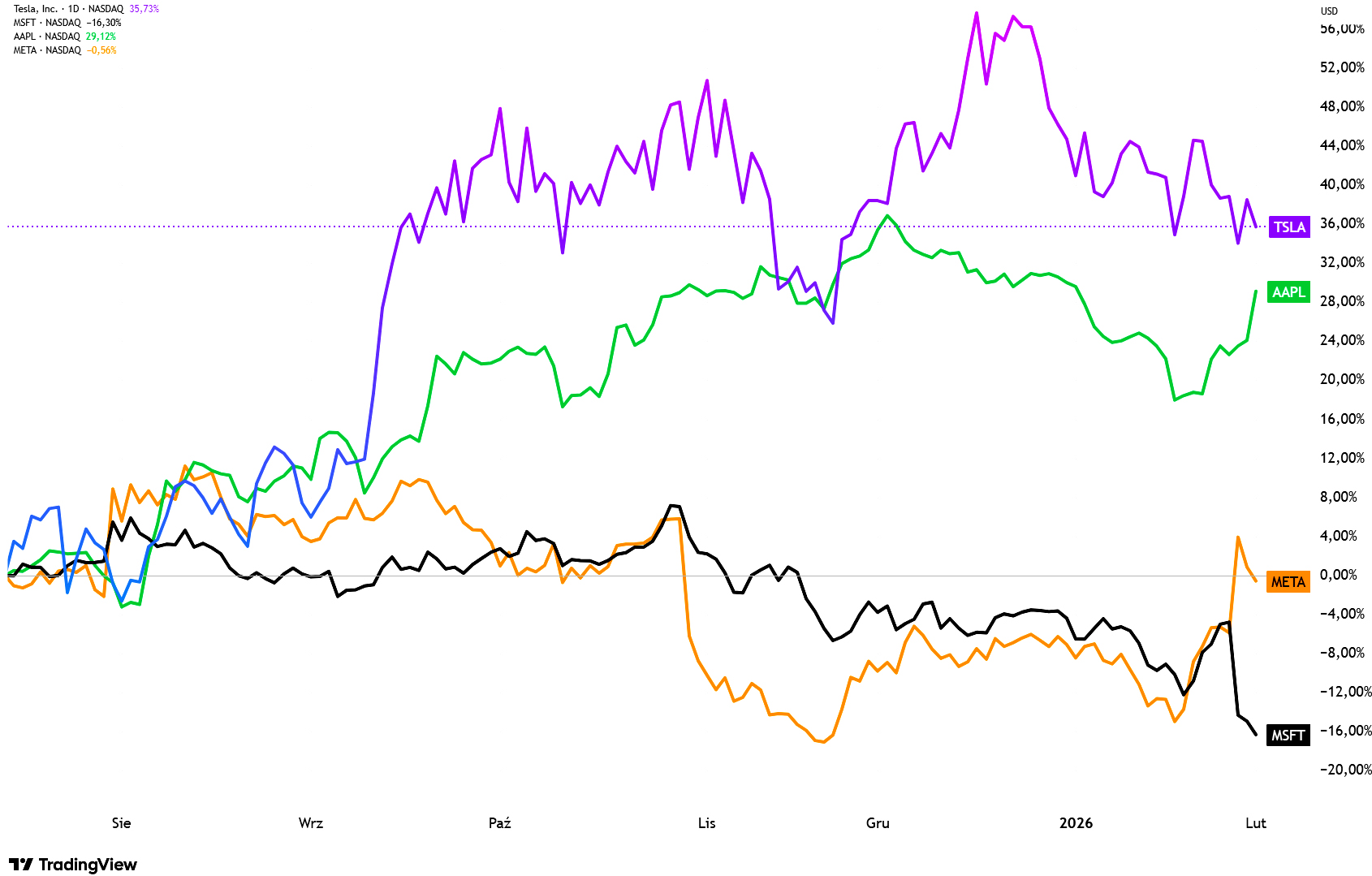 Generalnie big-techy zawodzą jeśli chodzi o zmiany kursów giełdowych. Same zyski są całkiem przyzwoite, ale Inwestorzy poczuli przesyt i są zaniepokojeni przede wszystkim tym, czy te wydatki inwestycyjne rzeczywiście się zwrócą i czy wystarczy energii na zasilanie AI. Konkurencja chińskiej AI jest naprawdę imponująca, ale nie widać tego jeszcze w tych wynikach spółek z USA. Dość słabe jest nadal wdrażanie AI na poziomie biznesu, ale to wskazuje na spore możliwości jeszcze niewykorzystane.